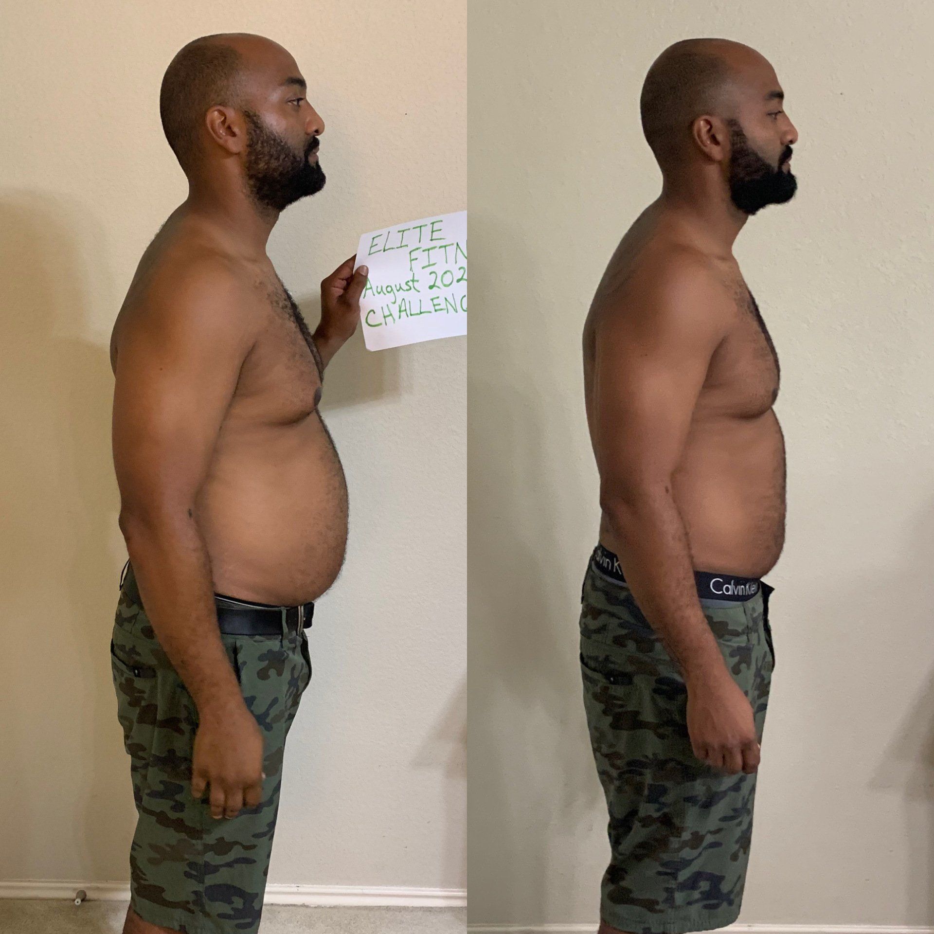 - Submit your initial before picture holding a paper that says May 5th on the Elite Fitness Studio Inc. app on May 5th (be sure to click box that says 'let trainer see my pics'). Please wear an outfit that can also be worn in your final after picture. Please try not to have a busy background in your picture, have good lighting, and do not hike your pants or shorts up over your stomach.